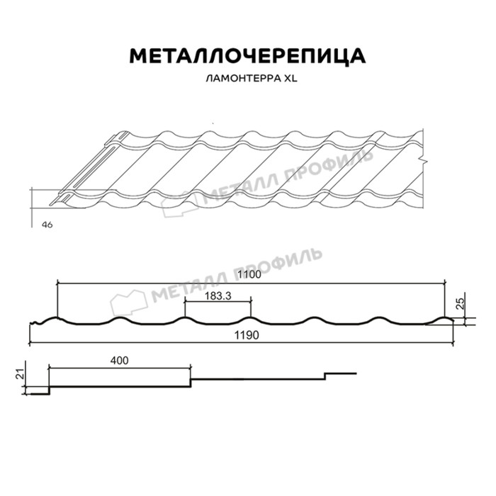 Металлочерепица Металл-Профиль Ламонтерра XL 0,45 Полиэстер RAL 3009 Красная окись